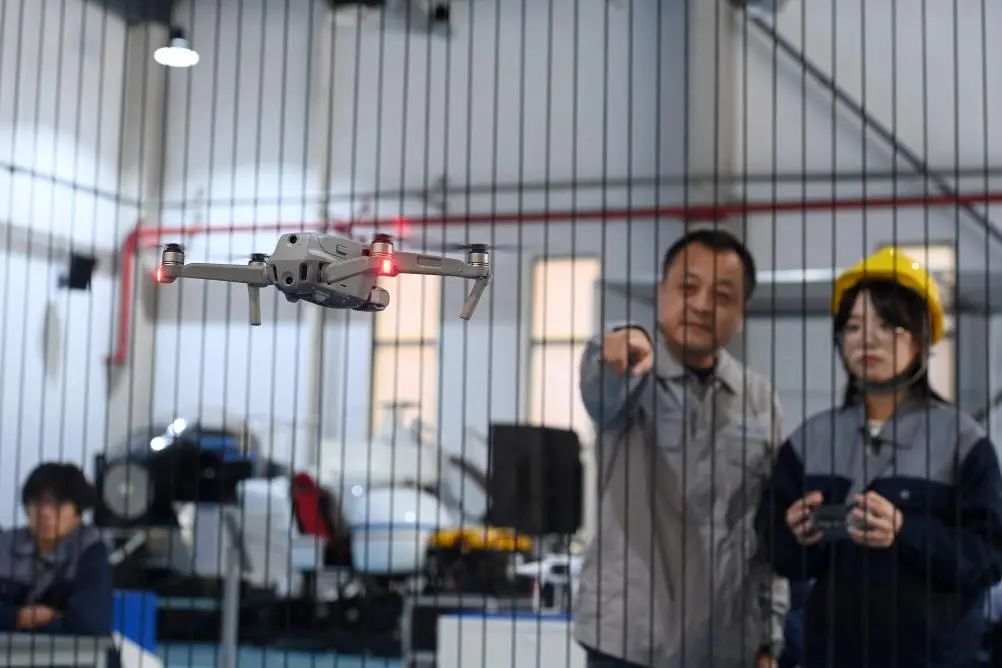 11月12日,天津现代职业技术学院老师在无人机产教融合实践中心指导学生。新华社记者 赵子硕 摄