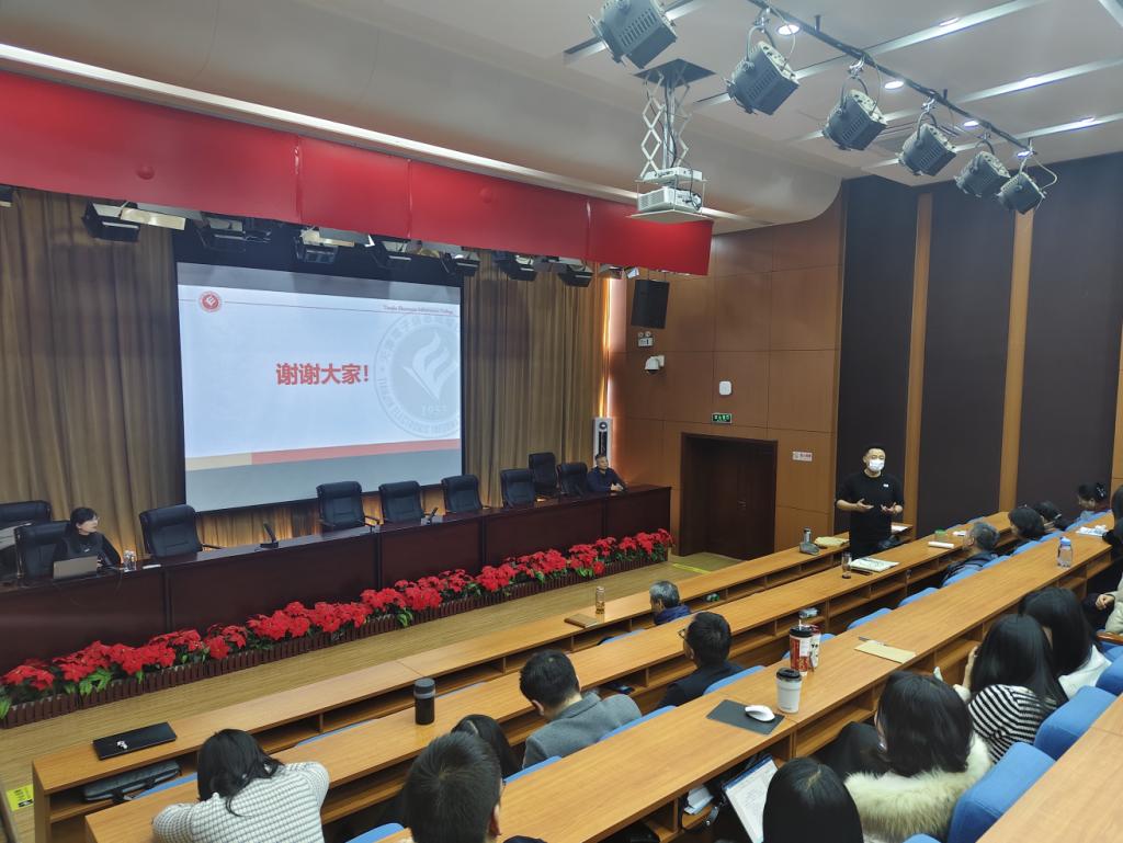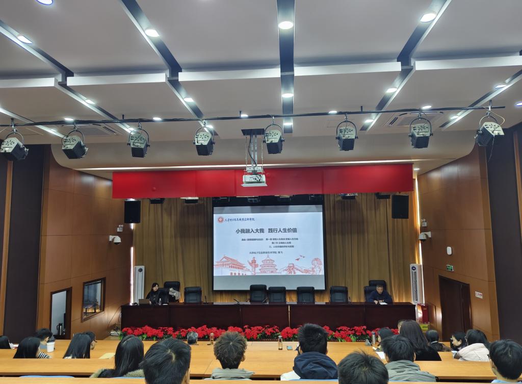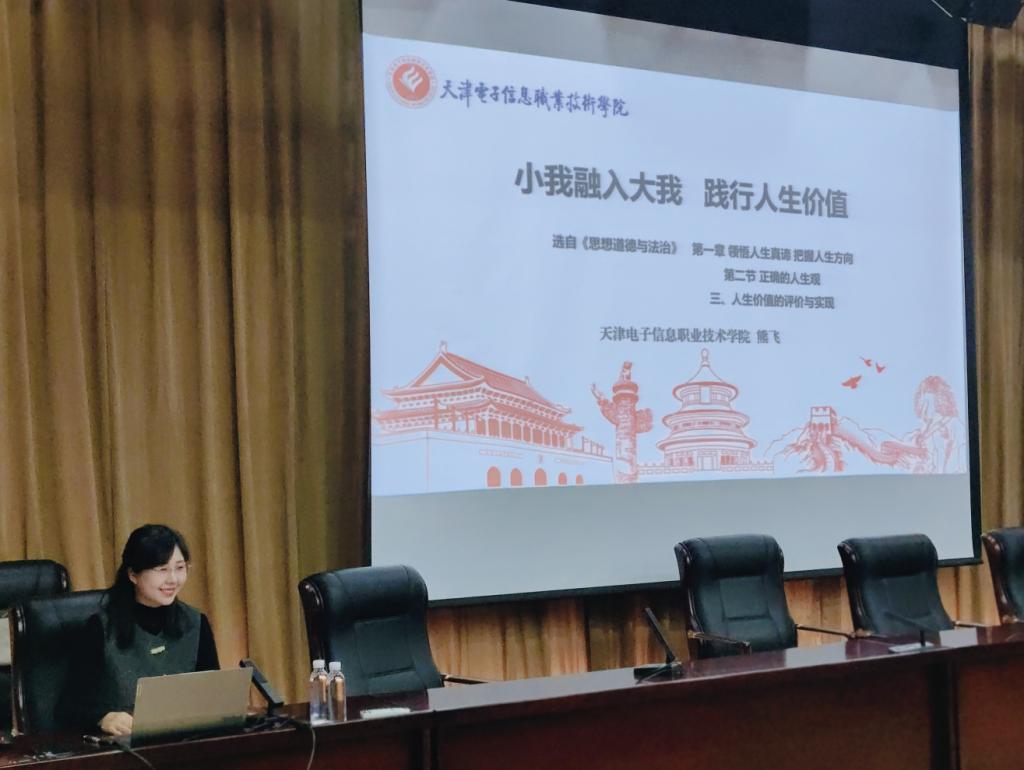 为学习贯彻落实习近平总书记关于学校思政课建设的重要指示精神,切实推进习近平新时代中国特色社会主义思想和党的二十大、二十届三中全会精神“三进”工作,进一步提升学校思政课教师教学能力及课堂教学效果,12月18日,马克思主义学院开展2024 下半年全国高职高专院校“思政示范课巡讲”活动,特邀天津电子信息职业技术学院副教授熊飞以“小我融入大我,践行人生价值”为主题进行了精彩巡讲。马克思主义学院全体思政课教师,学生代表五十余人参加示范课巡讲活动。
