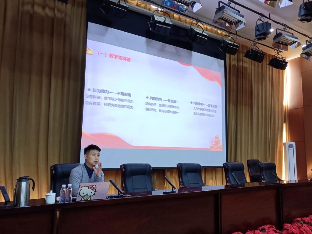 为深入学习贯彻党的二十大和二十届三中全会精神,落实习近平总书记在学校思想政治理论课教师座谈会上的重要讲话精神,牢牢把握“四个善作善成”重要要求,推动思政课教师学习培训常态化、长效化,全面提升学校思想政治理论课质量,2月21日下午,由马克思主义学院主办的“思政课教学质量提升专项培训”第二次活动成功举办。活动邀请天津师范大学马克思主义学院副院长、博士生导师王雪超作专题授课,马克思主义学院党支部全体教师参加。