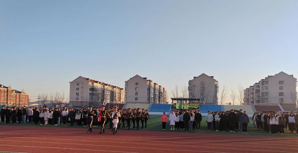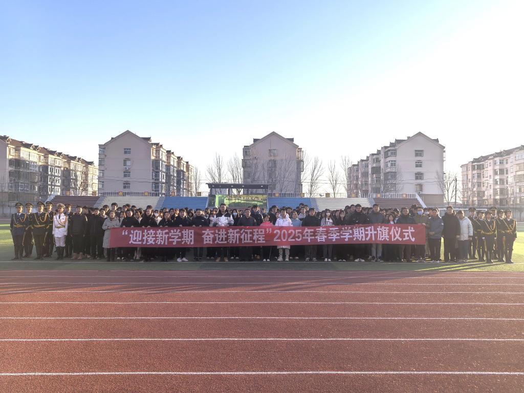 2月24日清晨,学校于体育场举行2025年春季学期升旗仪式,学校党委副书记、工会主席、副院长王蕾,学工部、团委全体中层干部,各二级学院党支部副书记、团委书记及200多名学生干部齐聚校园,共同见证了这一庄严而振奋人心的时刻。本次升旗仪式不仅标志着新学期的正式开始,也为全体师生吹响了奋进新征程的号角。