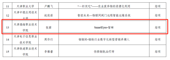 近日,天津市教委两委公布了2024年第四批天津市大学生创新创业拔尖项目结项名单,学院推荐项目《SmartEyes-智眸》获批结项。