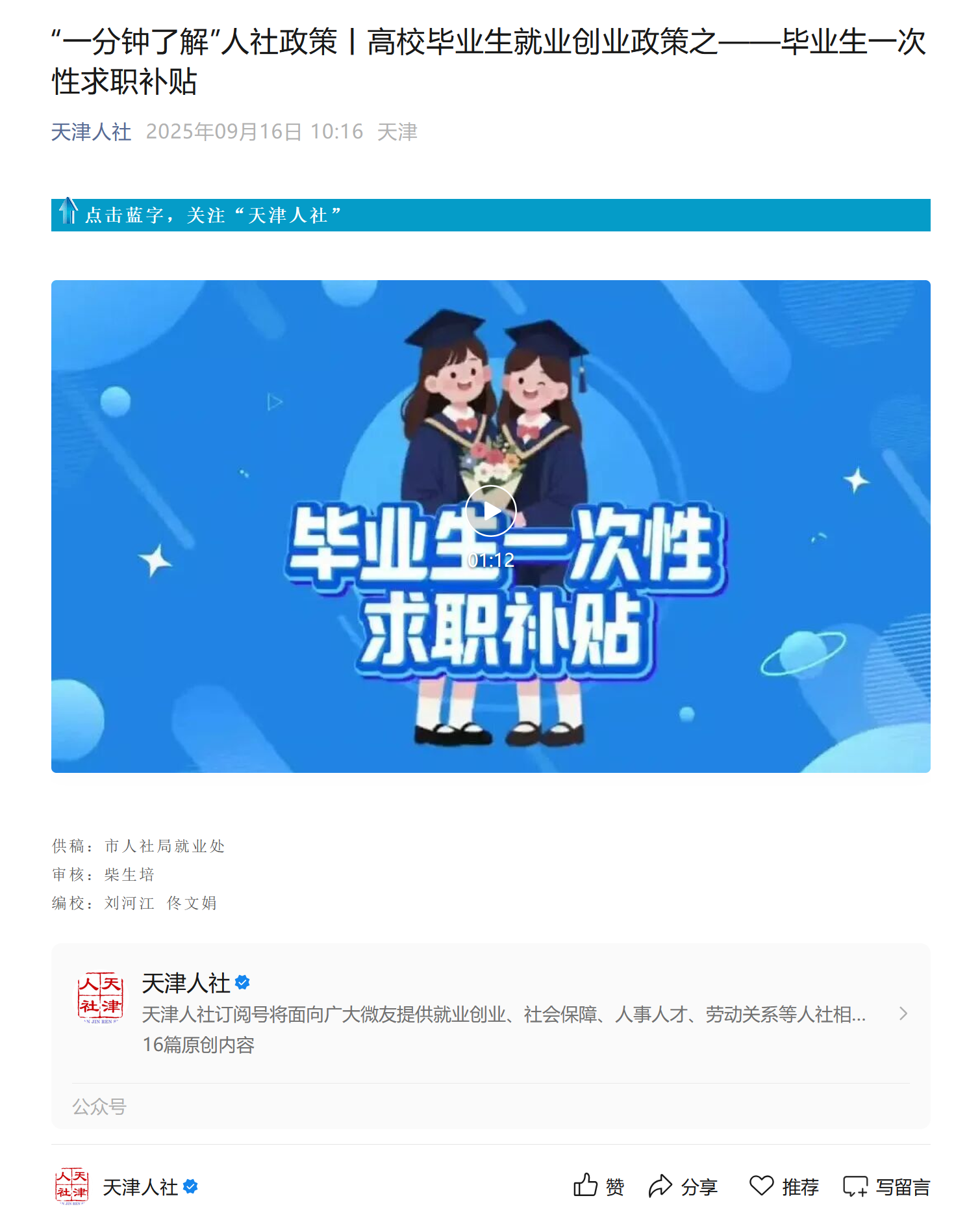 具体详见网址:“一分钟了解”人社政策丨高校毕业生就业创业政策之——毕业生一次性求职补贴