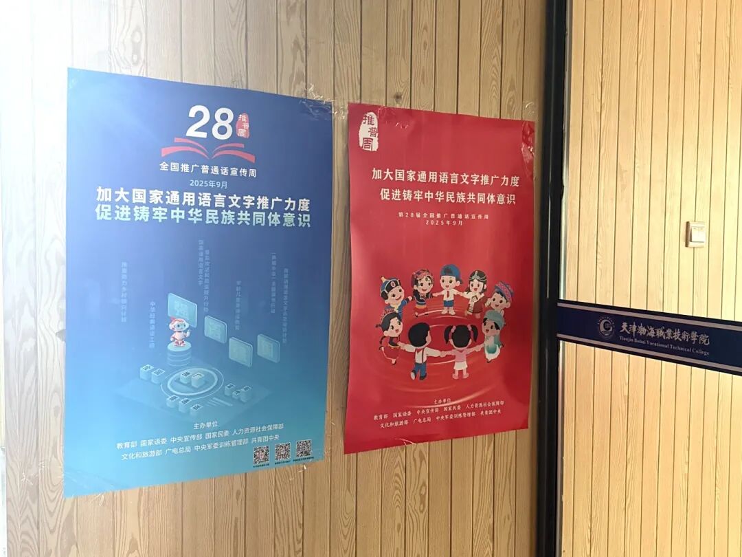 除沉浸式文化活动外,学院同步构建全方位宣传矩阵,确保推普信息精准触达全体师生。通过校园宣传栏张贴主题海报、电子屏幕滚动播放推广标语与宣传视频等形式,将“说普通话、写规范字”的理念融入校园日常,浓厚的推普氛围激发了师生参与语言文字规范学习的热情,也展现了学院在校园文化建设中的用心与担当。