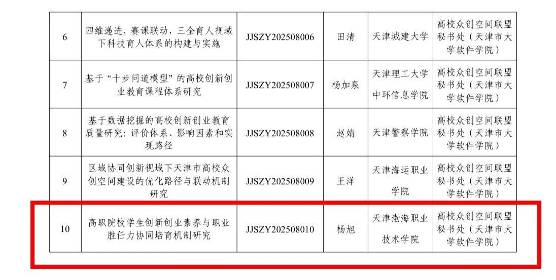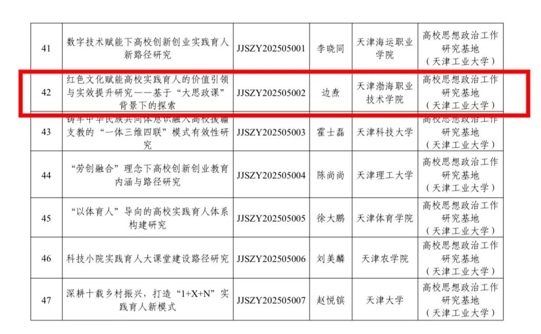 日前,市教育两委公布了2024年天津市大中小思想政治工作专项课题结项名单和2025年天津市大中小思想政治工作专项课题立项名单。学院1个重点课题顺利结项。同时今年再获佳绩,实现2个课题双赛道立项,充分彰显了学院党委“大思政”工作格局的协同优势,也标志着学院思政工作研究从“单点突破”迈向“系统建构”的新阶段。