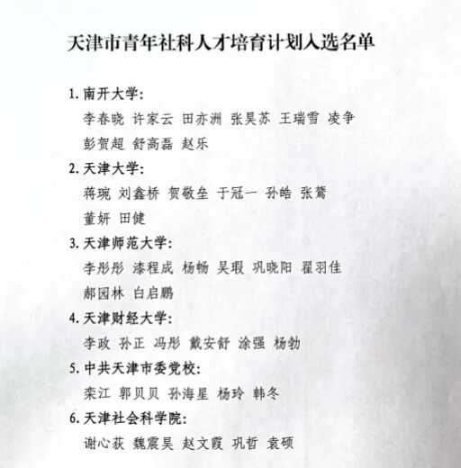近日,天津市青年社科人才培育计划启动会暨青年学者提升科研素养学习交流会在天津举行,我院徐文老师成功入选该计划首批培育对象。