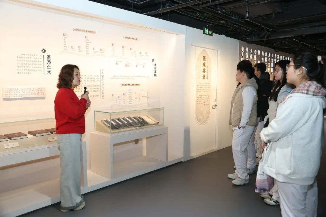 活动伊始,博物馆讲解员带领师生们有序参观馆内各个展区,从津药达仁堂的百年发展历程,到各类珍贵的中医药典籍、传统制药器具,再到道地药材的辨识、古法炮制工艺的展示,讲解员都进行了细致生动的讲解。师生们认真聆听、驻足观看,不时交流探讨,在一幅幅历史图片、一件件实物展品中,深入了解了中医药文化的传承与发展,感受着老字号企业坚守品质、精益求精的匠心精神,也对天津本土中医药文化的底蕴与魅力有了更直观、深刻的认识。