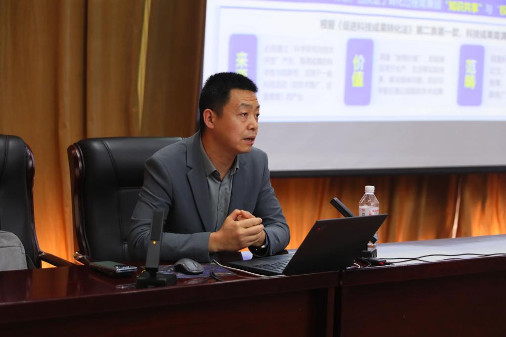 随后,天津理工大学化学化工学院副教授张舜光作《高校科技成果转化的路径与实践》专题讲座。张教授以自身从事化工相关领域研究与产业化工作为例,围绕高校科技成果的种类、产生过程、企业需求、转化核心痛点、典型模式与实操策略,结合自身丰富的科研与转化经验,深入解读科技成果权属界定、专利布局运营、校企合作机制、转化风险防控等关键问题。通过对比不同高校成功转化案例,总结可复制、可推广的实践经验,为学院提供科研成果从“实验室”到“生产线”转化通道的路径思路,提升知识产权运营效益,提供了专业指导与实践借鉴。整场讲座兼具理论高度与实践深度,精准回应教师们在科研创新与成果转化中的困惑,获得一致好评。