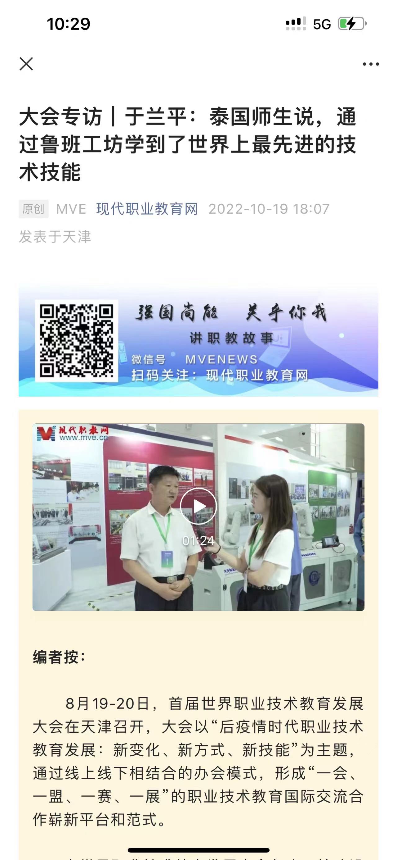 现代职业教育网:大会专访 泰国师生说,通过鲁班工坊学到了世界上最先进的技术技能