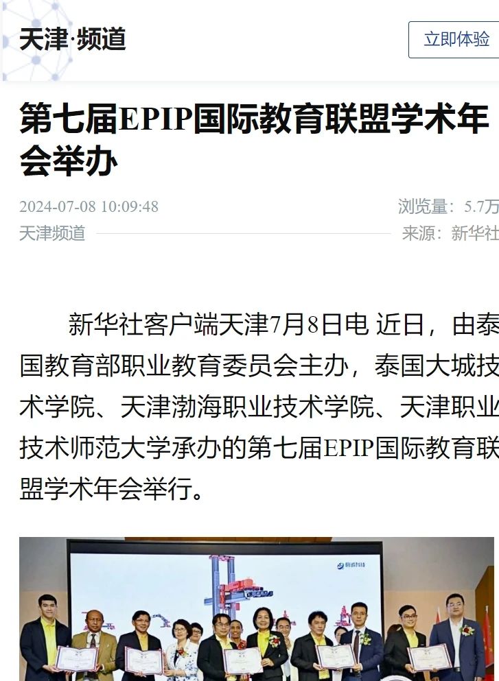 媒体聚焦渤海|由学院和天津职业技术师范大学共同承办的第七届EPIP国际教育联盟学术年会被中新网、新华社等多家媒体报道。